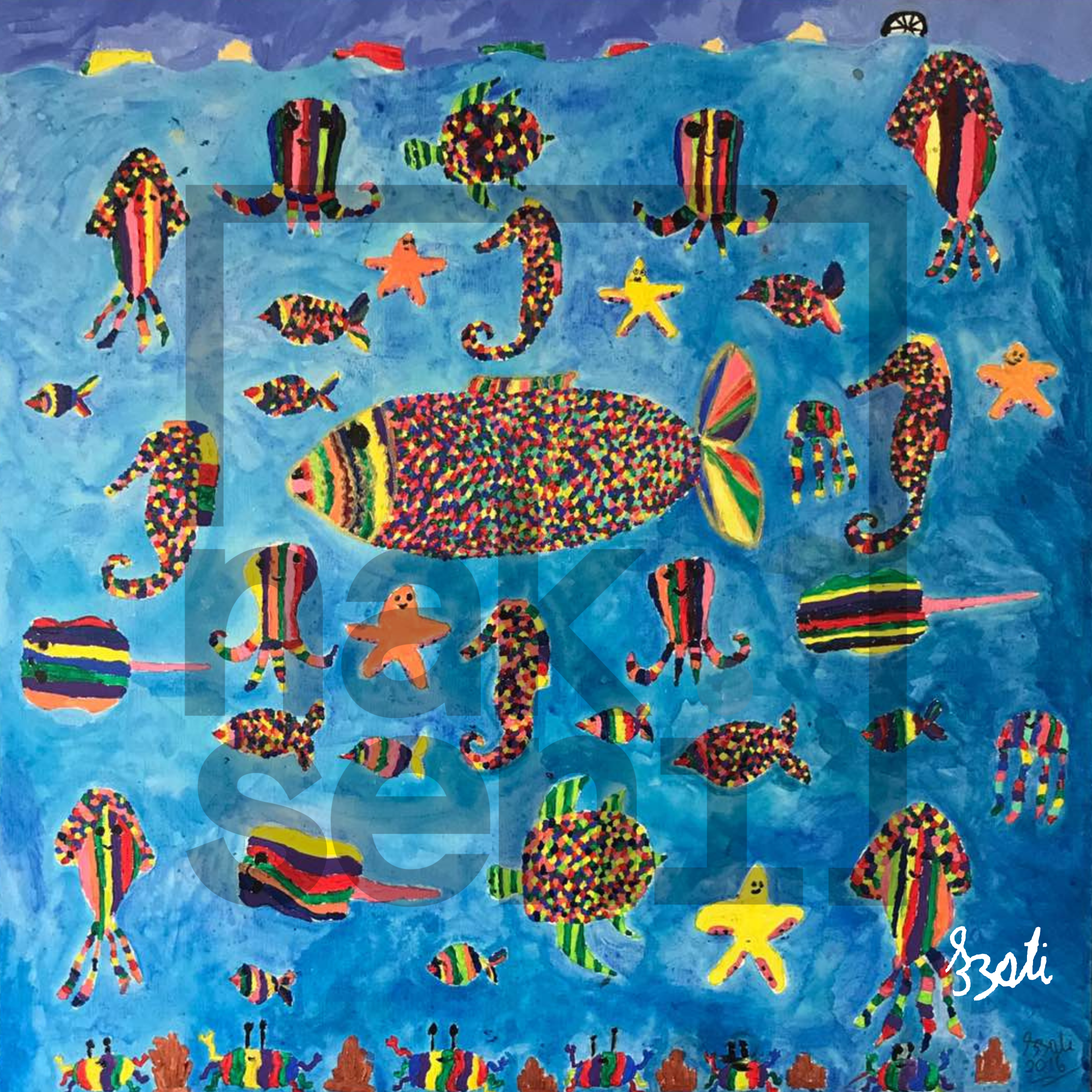 Under My SeaUnder My Sea by Izzati Shahrin; A 2016 piece, created for the International Forum on Inclusive Wealth, Izzati Shahrin brings her love for the ocean to life. Observing the sea’s varied blue shades, she highlights its beauty—yet intentionally leaves the top dark and polluted, showing how pollution threatens the ocean she cherishes. This artwork is Izzati’s call to protect our seas before it’s too late.
